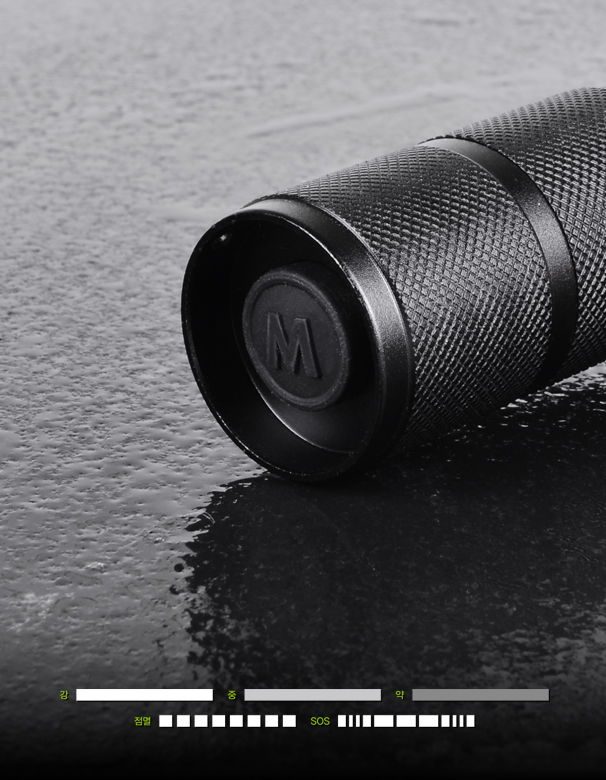 순차적으로 강-중-약-점멸-SOS 다섯가지 발광 모드로 변경이 가능합니다.