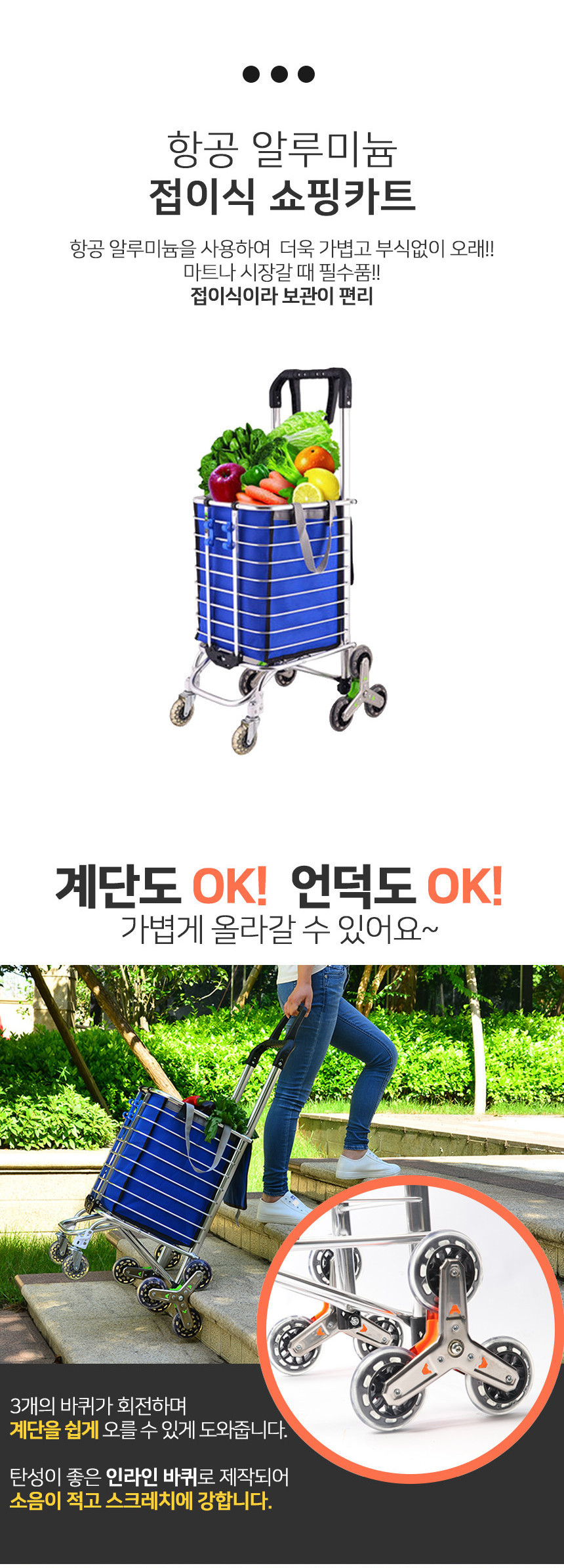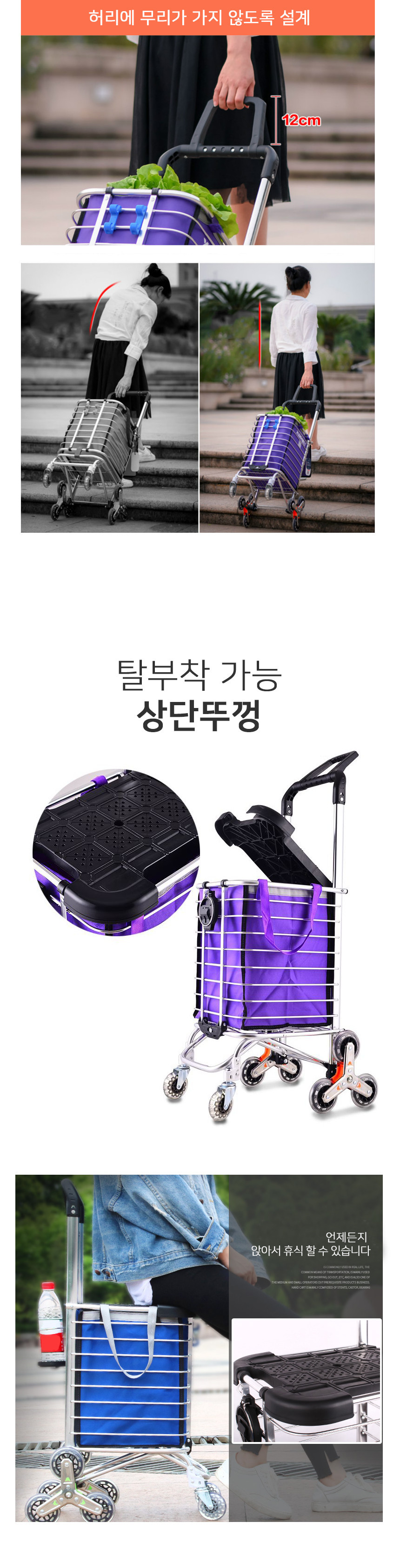 예시) 시장이나 마트에서 방향 전환이 자유롭기 때문에 끌고 다니면서 장보기가 편리하다.