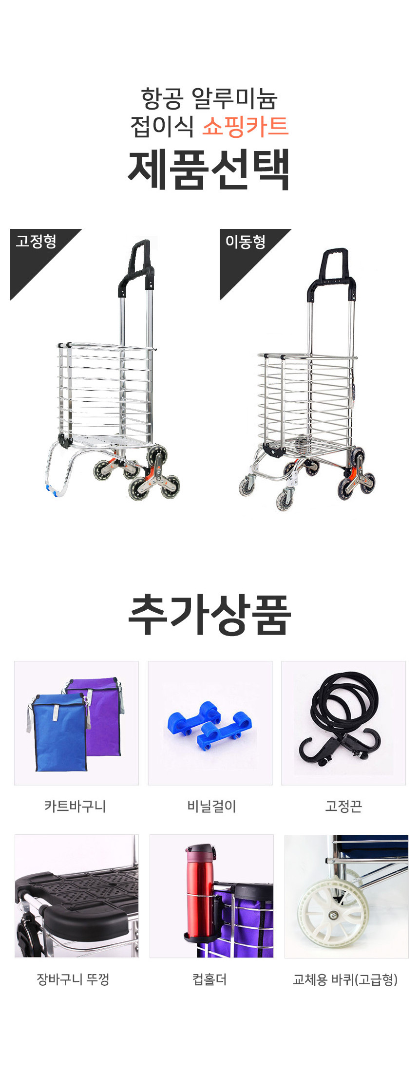 - 추가 상품 (카트바구니, 비닐걸이, 고정끈)과 함께 사용하면 더욱 편리하다는 점