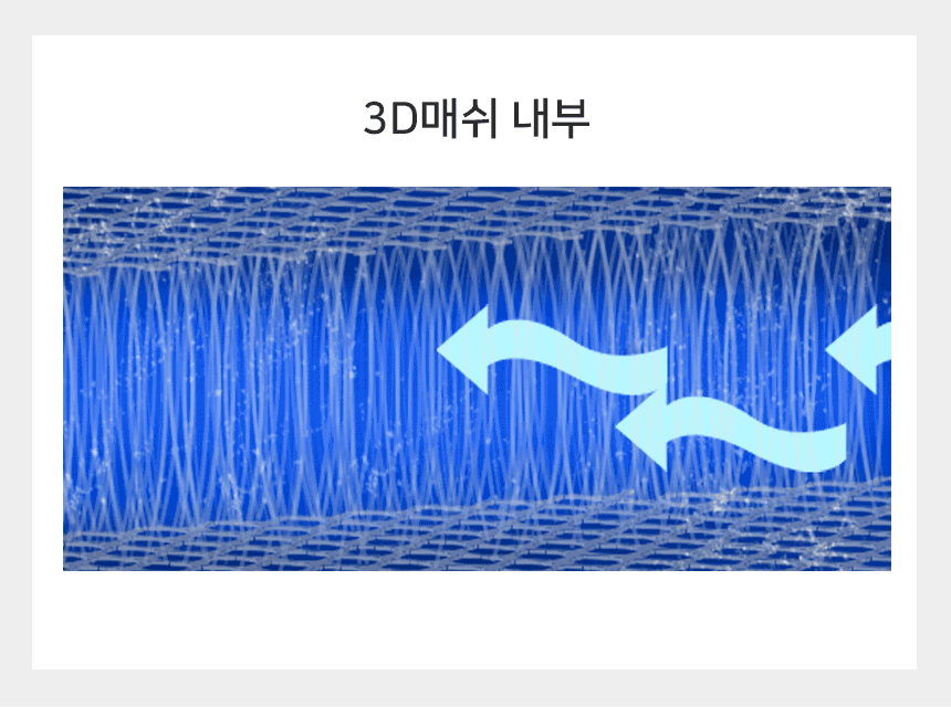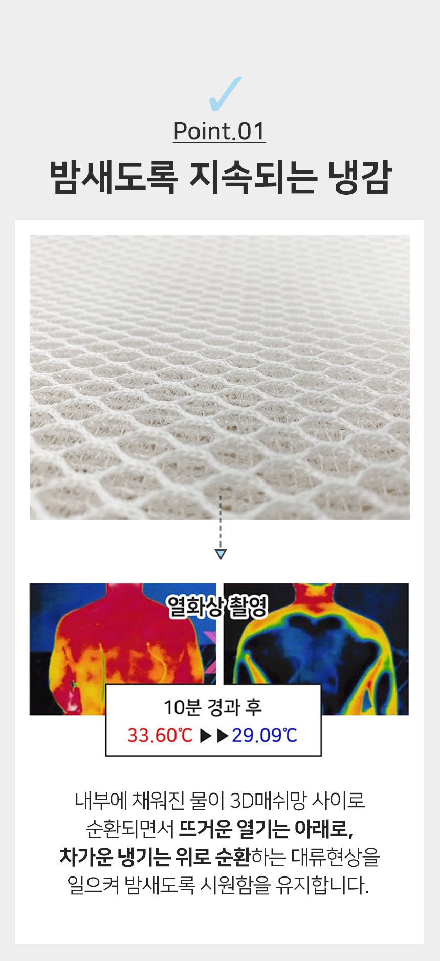 - 3D 매쉬 소재로 인해 냉감이 오래 지속된다는 내용