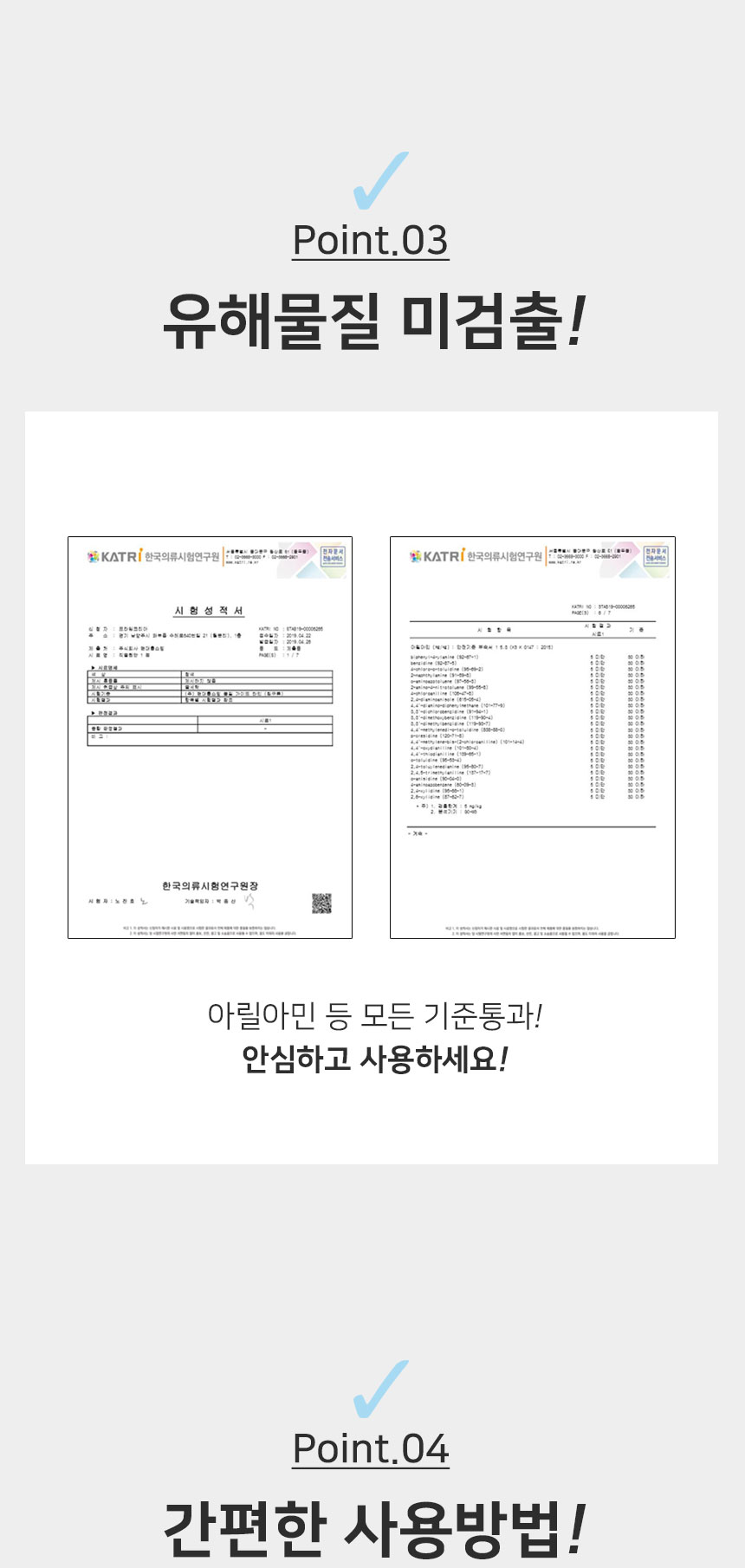 - 유해 성분 검사를 통과한 안전한 제품이라는 점