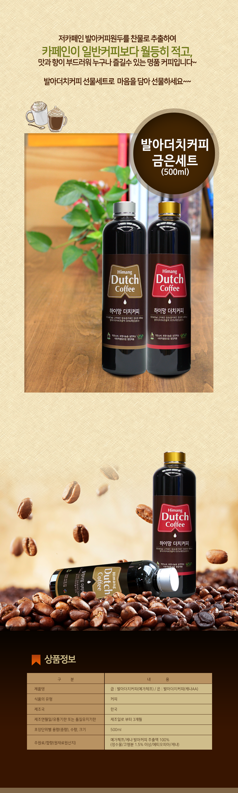 발아더치커피 금은세트 (500ml X 2병) + 더치커피워터 1병 + 투명커피워터 1병 (특허)
