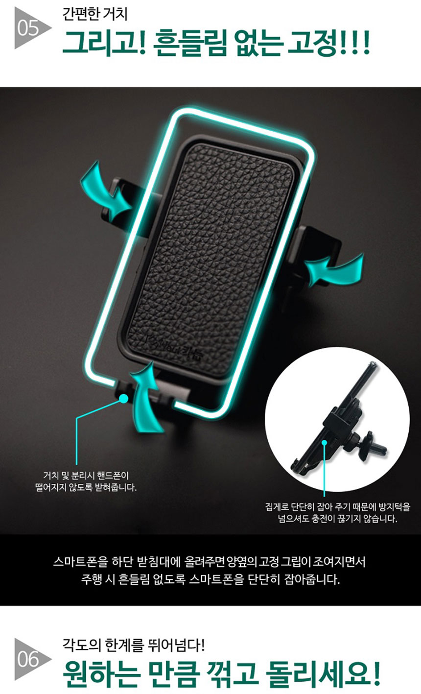 - 자동 슬라이딩 거치대의 경우 살짝만 닿거나 핸들을 돌릴 때에도 혼자 작동되어 주행 중에 거치해둔 스마트폰이 떨어질 수 있음
