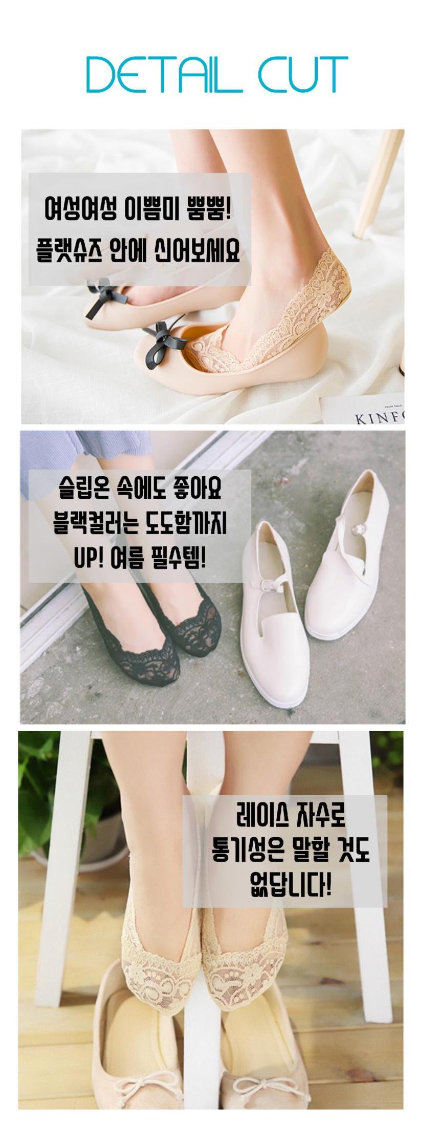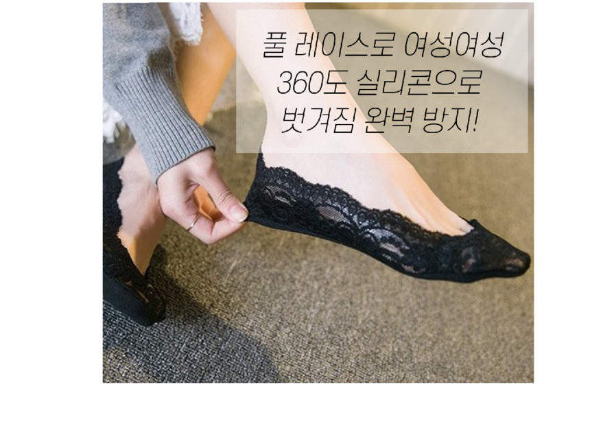 마른파이브 여성용 실리콘 처리 면 덧신 & 레이스 덧신
