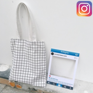 [인스타] 나하오 양면 체크 린넨 무지 에코백